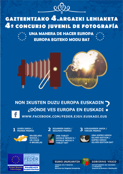 Eusko Jaurlaritzako Ogasun eta Finantza Saileko Ekonomia eta Plangintza Zuzendaritzak "Non Ikusten duzu Europa Euskadin?" deituriko Gazteentzako 4. Argazki Lehiaketa martxan jarri du. Ekimen honek Europa euskal gazteriari hurbiltzeko asmoa du, Europak bere ingurunearen garapenean nola lagundu duen argazki batean irudikatzera gonbidatuz.