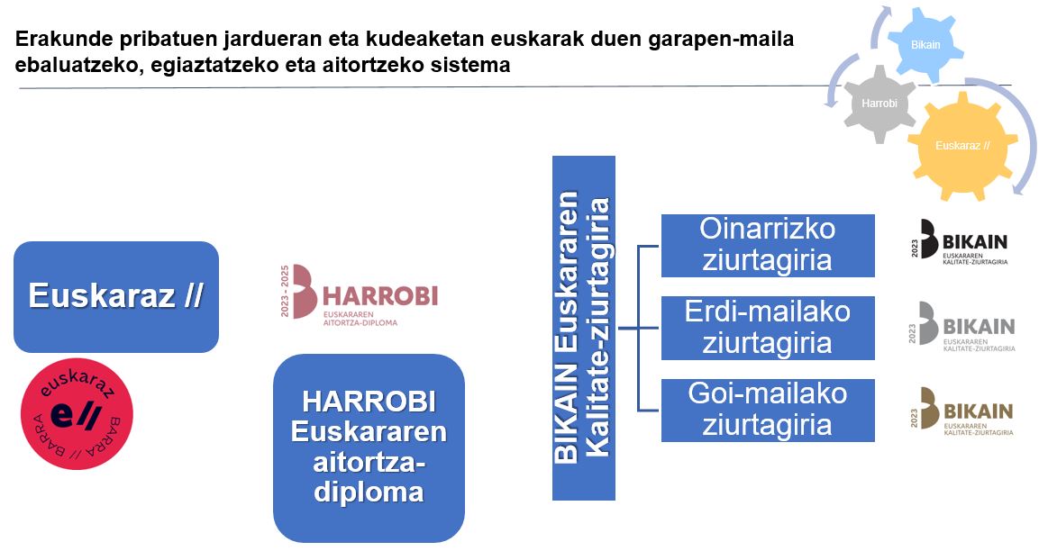 - Esparru sozioekonomiko pribatuan euskararen erabileraren, presentziaren eta kudeaketaren normalizazio-maila egiaztatzea eta aitortzea.