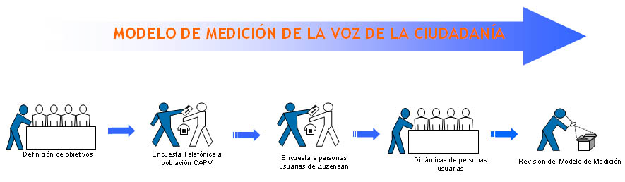 El Modelo de Medición de la Voz de la Ciudadanía se resume en 5 fases en las que se desarrollan diferentes metodologías: