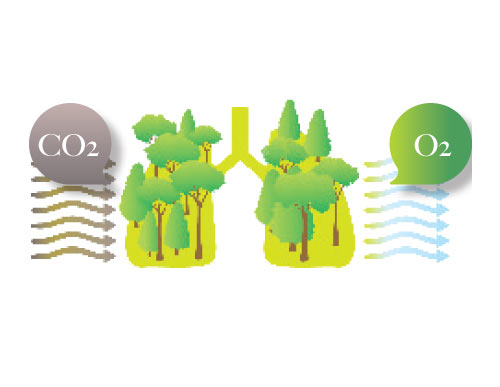 Landare guztiekin gertatzen den bezala, fotosintesi-prozesuan zuhaitzek atmosferako CO2 xurgatu eta O2 itzultzen dute. Gaur egun eginkizun hori are garrantzitsuagoa da, gizakiaren jardueraren ondorioz sortzen diren gehiegizko isurien eragin negatiboak, hau da, berotegi efektua, gutxitzen laguntzen dutelako. Basoak Lurraren 'birikak' direla esan ohi da.