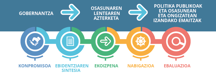 Lan egiteko kontzeptu-esparrua, osasun-inpaktua baloratzeko eredua, gobernantza-egiturak eta osasun-lentea aztertzeko prozesuaren faseak azaltzen dira.