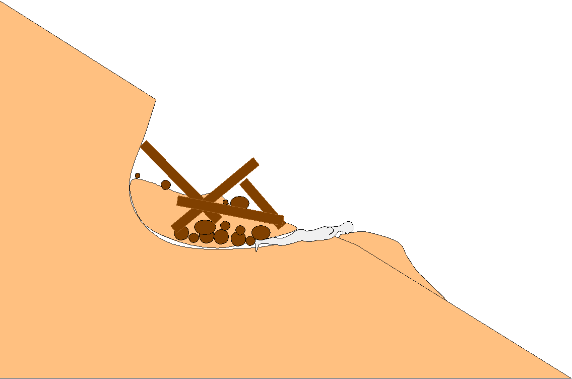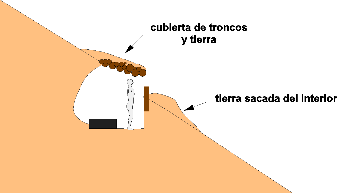 Era honetako eraikuntzak egiteko, aurreko aldean parapeto moduan jartzen zen lurra kentzen zen mendi-hegaletik, eta, hala, bitarteko espazio bat prestatzen zen. Espazio hori teilatu batekin estaltzen zen, enborrez osatutako eta lurrez estalitako egitura baten bidez. Hartara, kamuflatu egin zitekeen, eta ikusgarritasuna murriztu, arerioen abiazioak erasoak egiten bazituen.