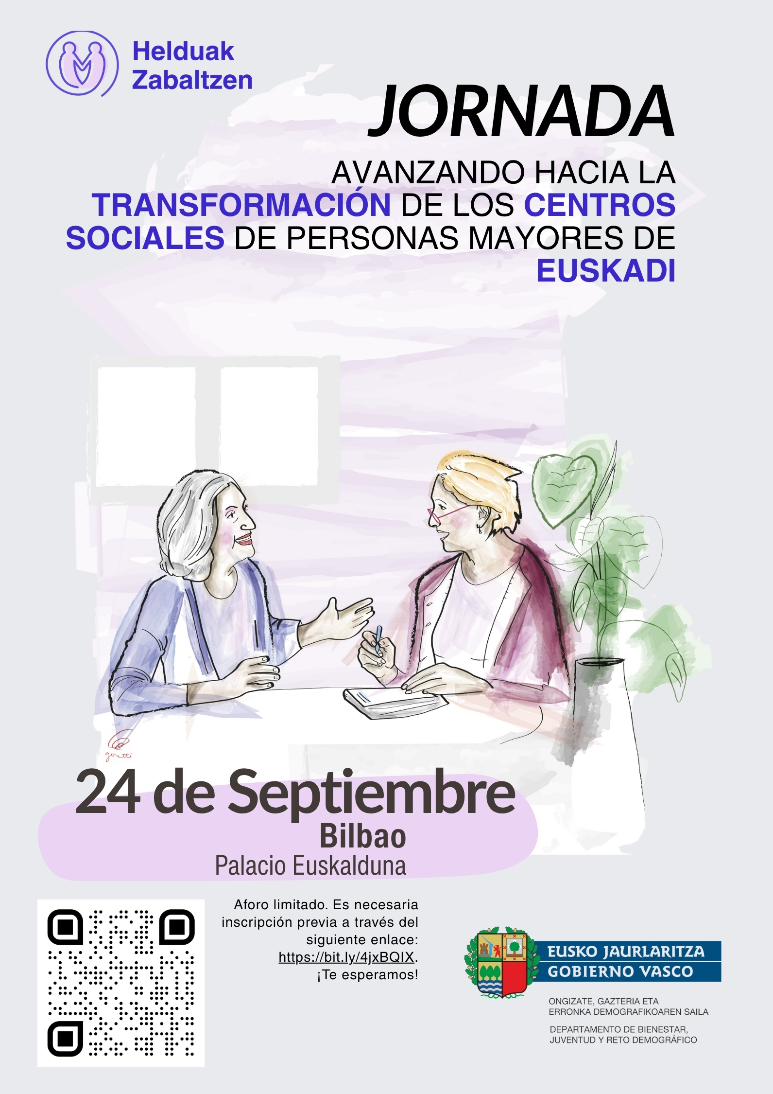 Será un espacio para reflexionar de forma compartida sobre el futuro de los Centros Sociales de Personas Mayores en Euskadi, a partir de experiencias reales de transformación ya en marcha. Durante el encuentro, centros de distintas localidades —urbanas y rurales— compartirán sus aprendizajes, retos y propuestas, generando un diálogo enriquecedor entre las personas mayores protagonistas del cambio.