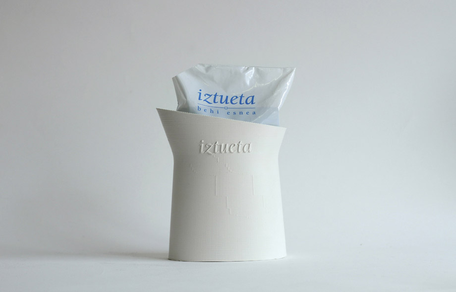 Iztueta Lazkaon, hau da, Gipuzkoako bihotzean kokatutako esne-ekoizle txikia da eta berezko pitxer bat behar zuen esne-poltsak edukitzeko, bere bezeroei merchandising gisa oparitzeko. Funtsean, proiektuaren erronka zen unitate gutxi fabrikatu nahi zirela, baita ostalaritza-lokaletan erabiltzeko baldintzak ere.