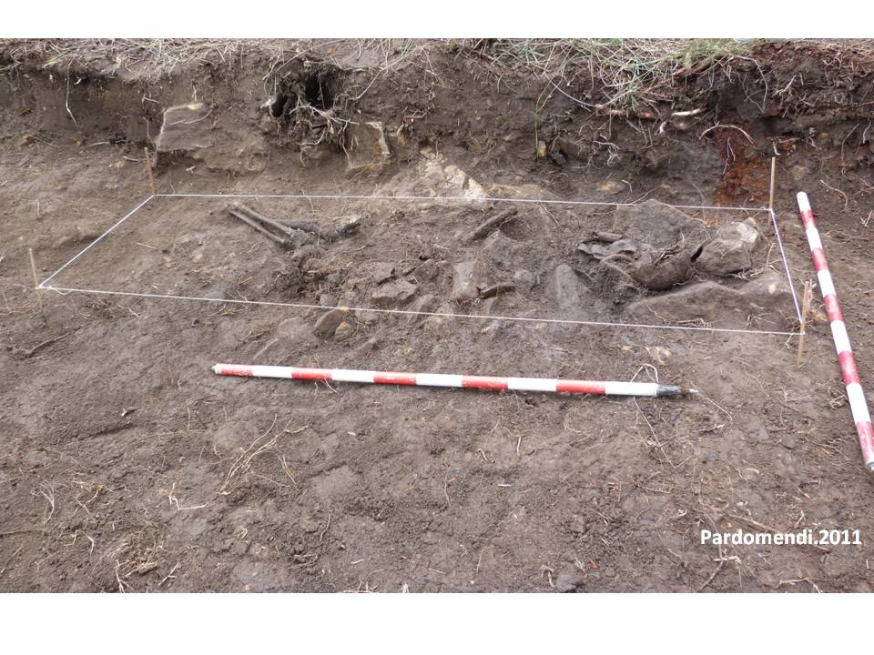 Detektagailuekin egindako prospekzioen bidez, fusileria-munizioa eta uhal militarren hondarrak aurkitu ziren, gizakien hondarrekin batera, oso azalean.