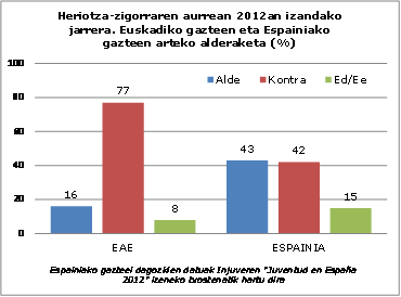 Azken urteotako joera ikusita, antzeman daiteke heriotza-zigorraren alde dauden gazteen ehunekoak gora egin duela: % 9 zen 2008an eta % 16 da 2012an.