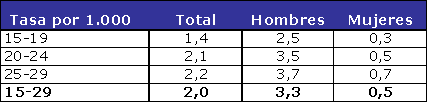 Tasa de Inicio de Tratamiento por Drogodependencias en la población de 15 a 29 años, por grupos de edad y sexo. 2011