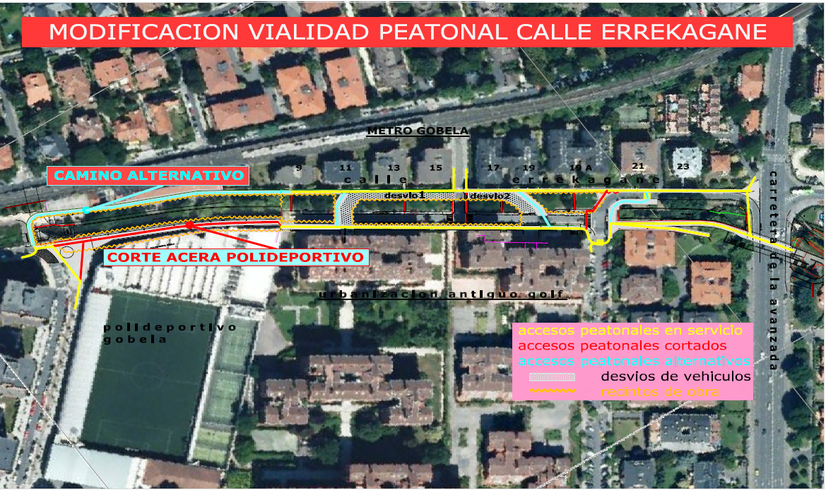 Azken horiek ibilgailu eta oinezkoei eragiten diete Golf Zaharreko urbanizazioko metro-geltokian eta garajeetan sartzeko orduan. Lanok direla-eta, oinezkoentzako bidea metro batzuk aldatu behar izan dute Plentzia Hiri aldera, Errekagane 21etik Errekagane 23ra.