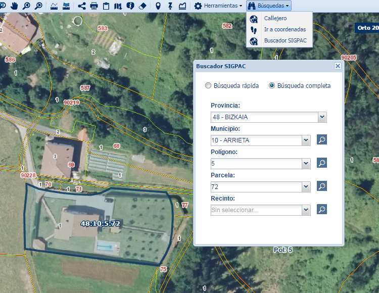 - Con una selección guiada a través de provincia, municipio, polígono, parcela o recinto
