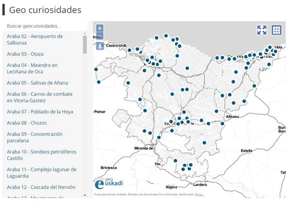 Se ha creado una aplicación que aglutina las curiosidades con carácter geográfico encontradas sobre el territorio de la CAPV y representada en las diferentes capas de información geográfica almacenadas en el IDE de Euskadi.