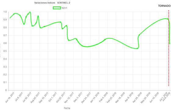 Las nuevas constelaciones de satélites Copernicus, con una periodicidad de captura de 5 días entre imágenes Sentinel-2, ayudan a la evaluación de daños y posterior seguimiento de la evolución de la zona afectada. Gracias a que estas imágenes tienen tamaño de pixel de 10m y estar geométrica y radiométricamente corregidas permiten la medición precisa del área.
