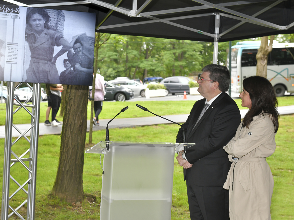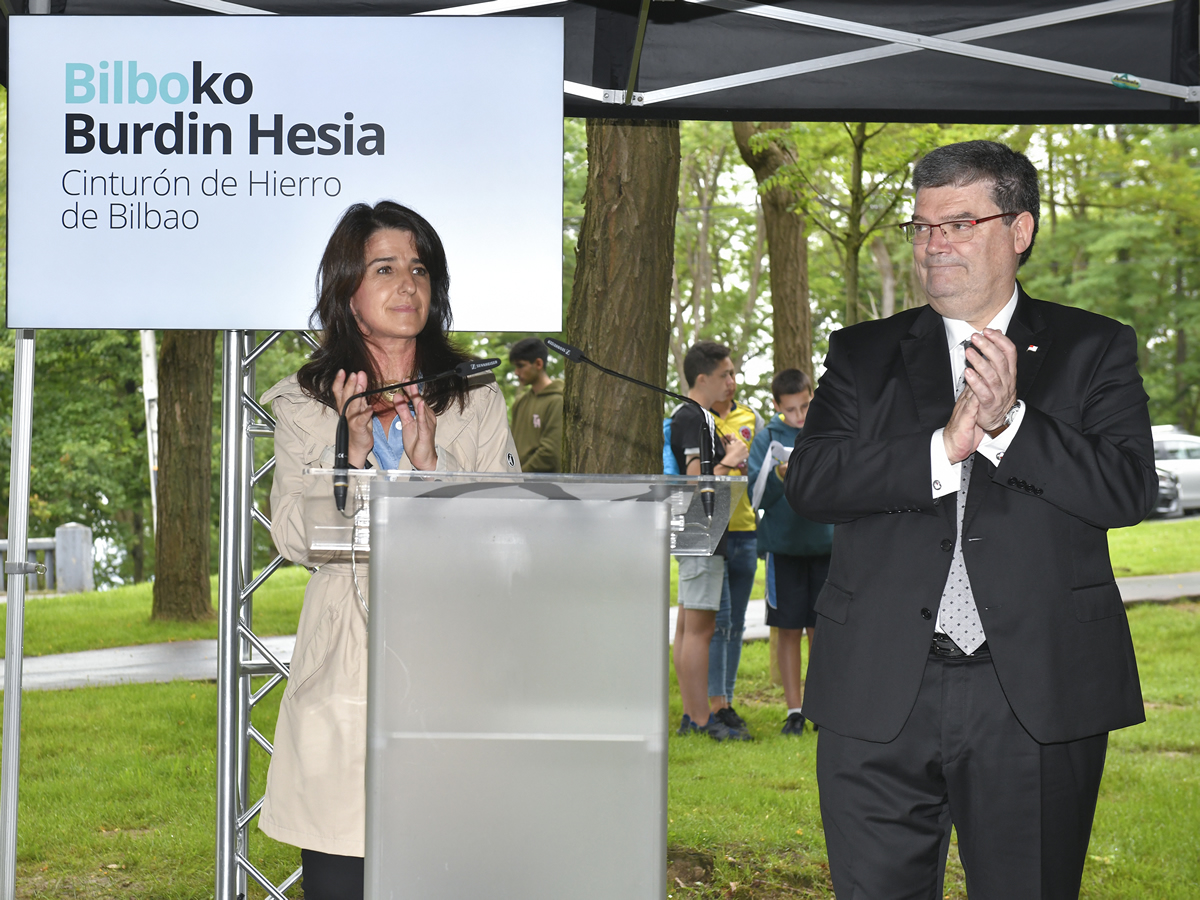 El Alcalde de Bilbao, Juan Mari Aburto, y la Directora del Instituto Gogora, Aintzane Ezenarro, han presentado esta mañana la señalización de los “itinerarios de la memoria” en torno al Cinturón de Hierro en el barrio bilbaíno de Artxanda. A través de un panel de señalética lo que se pretende, por un lado, es informar a la ciudadanía del significado de la fortificación, y por otro, ayudar a recuperar la Memoria Democrática de Euskadi.