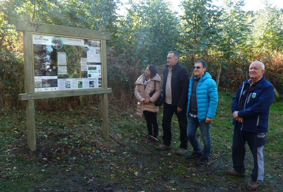 El Ayuntamiento de Güeñes y el Instituto Gogora han presentado esta mañana el recorrido “Burdin Hesia, Itinerario de la Memoria de Güeñes”, que cuenta con un nuevo panel informativo y señalización direccional.
