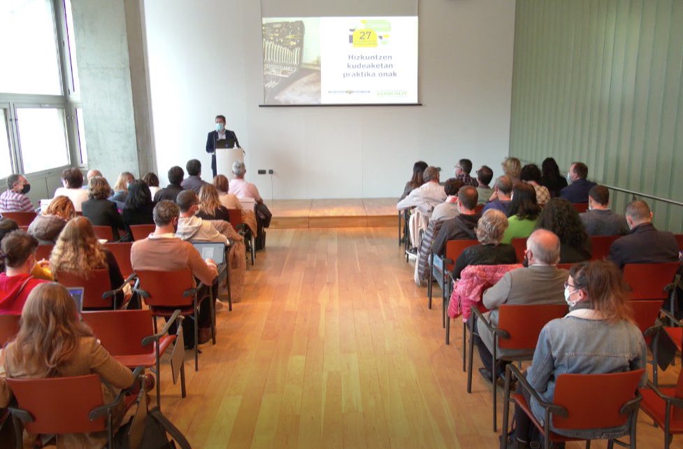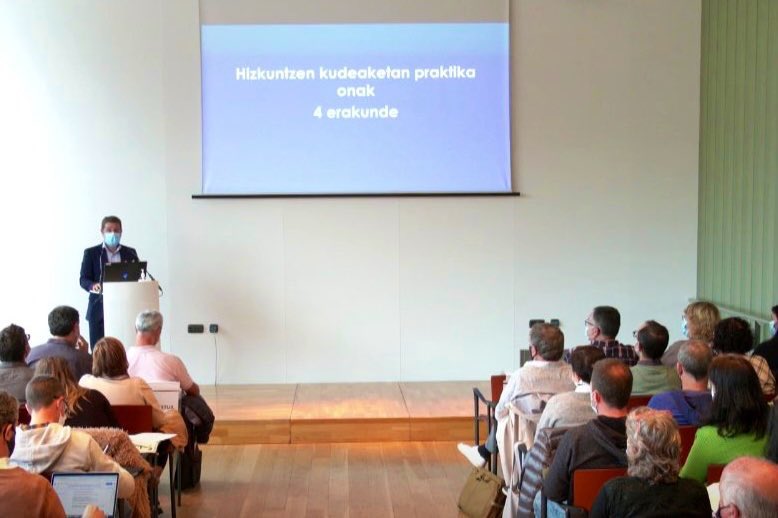 Egoitz Laburu, director general del IVAP y Garbiñe Doval, subdirectora de Euskera, han participado en el acto de la Semana Europea de la Gestión Avanzada organizado por EUSKALIT.