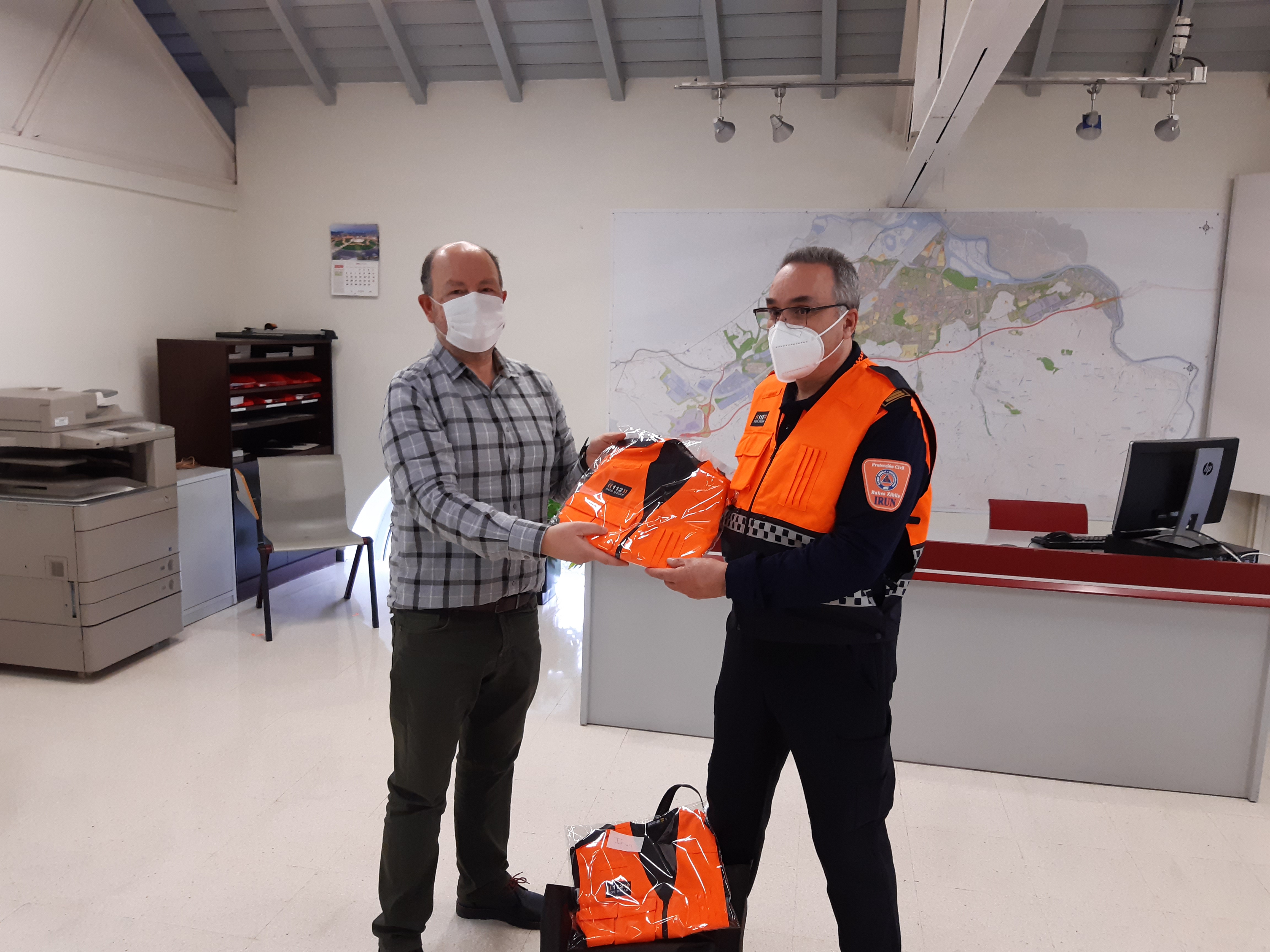 El Gobierno Vasco ha comenzado hoy, en Irún, la entrega de los 394 nuevos chalecos identificativos destinados a las distintas asociaciones y agrupaciones locales de voluntaria de Protección Civil de Euskadi. Es una iniciativa adoptada en la última reunión del Comité Asesor del Voluntariado con el objetivo de dotar a este colectivo de una imagen unitaria y reconocible a través de un diseño en el que figuran los anagramas de cada organización, el logotipo oficial 112 SOS Deiak y la frase “BABES ZIBILA-PROTECCIÓN CIVIL”.
