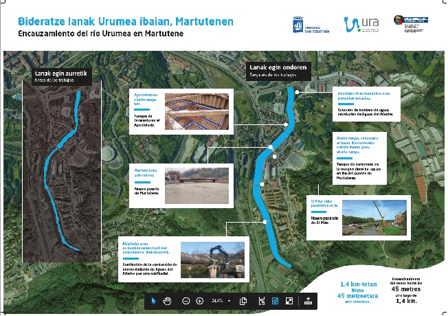 Dichas obras de la FASE II de defensa ante inundaciones del Urumea —entre el puente de Martutene y el del polígono 27— dan continuidad a las obras de ensanchamiento del cauce aguas arriba del puente de Martutene (FASE I), concluidas en 2018. Durante el 2020 se ha trabajado en el ensanchamiento del cauce de los 25 metros que presentaba antes, a los 45 metros de ancho actuales, a lo largo de 500 metros del tramo. Esa ampliación del cauce ha requerido la excavación y transporte de 120.000 m³ de tierra y piedra.