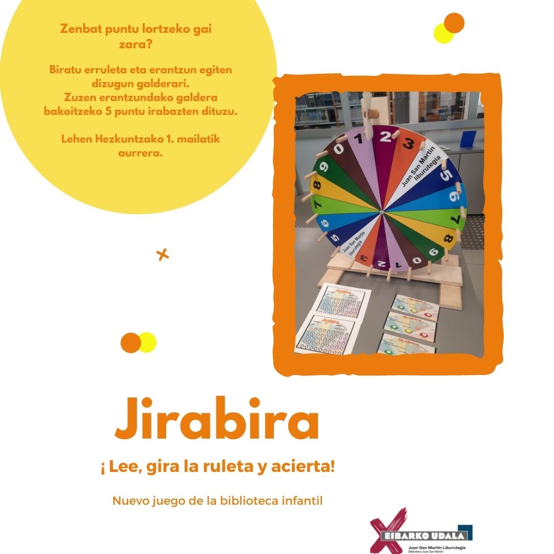 Llega el momento de jugar. Gira la ruleta y responde a la pregunta que te hagamos. Si el libro leído es en euskera, puedes tirar dos veces.
