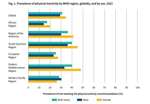 A finales de junio la Organización Mundial de la Salud (OMS) publicó un informe sobre los niveles globales de inactividad física en adultos. Este informe se basa en este estudio publicado en la revista The Lancet.