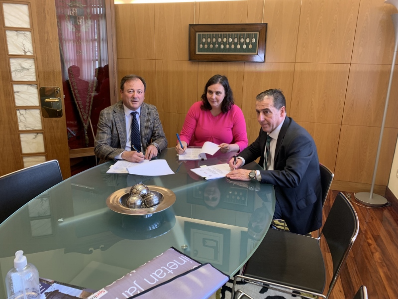 Antonio López, director general de ETS, Txaber Ouro, director general de Sprilur y Aitziber Oliván, alcaldesa de Erandio, ha suscrito esta mañana un convenio de colaboración, según el cual Sprilur, la Sociedad Pública de gestión de suelo industrial del Gobierno Vasco, que también aportará 3,2 millones de euros, ejecutará el proyecto.