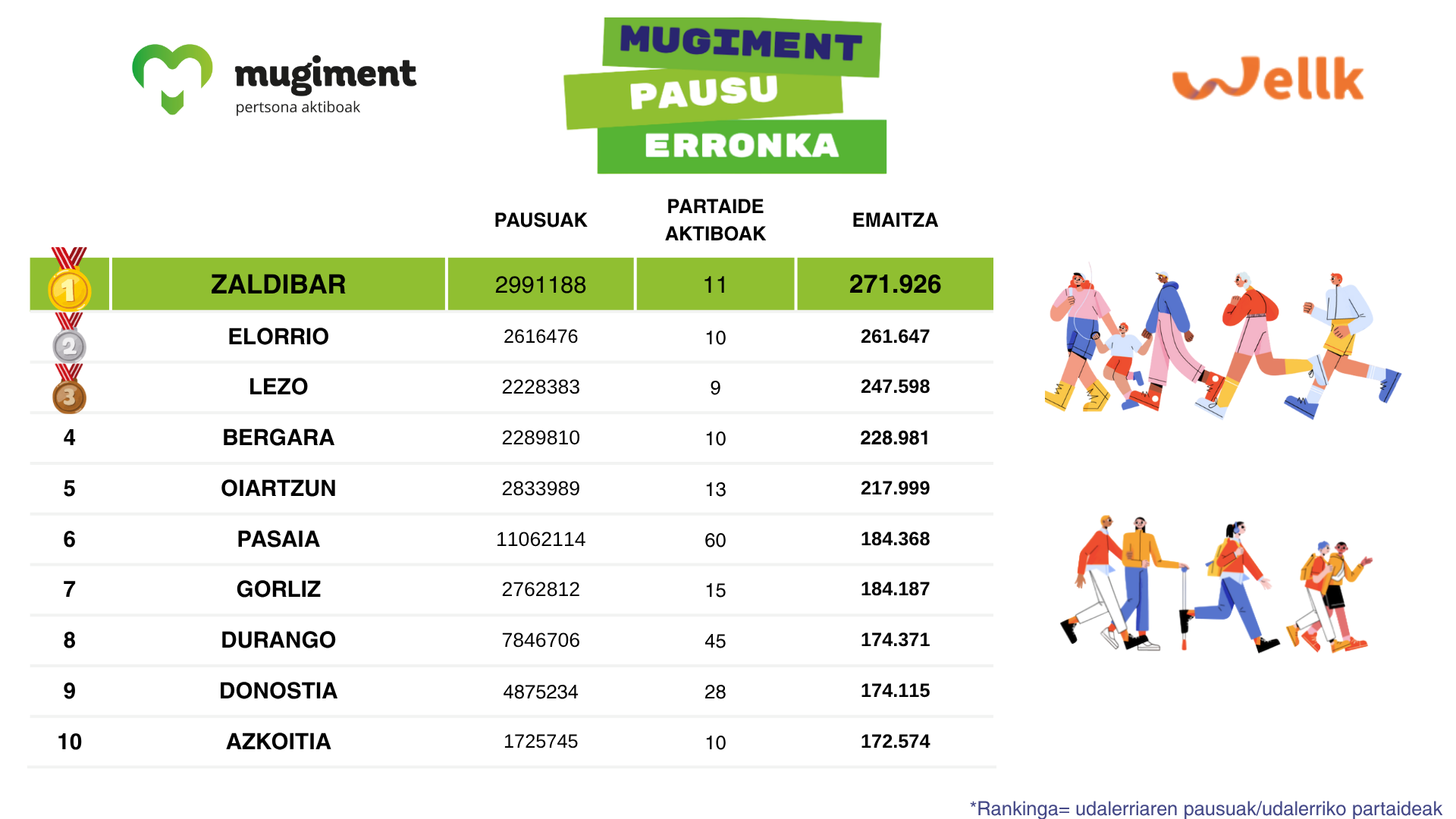 ¡Gracias a todas las personas participantes y especial felicitación a los municipios que más participantes y pasos habéis sumado!
