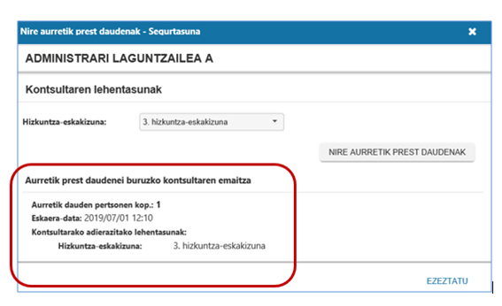 4.- “Aurretik prest” botoia sakatutakoan, sistemak zure egoera erakutsiko dizu.