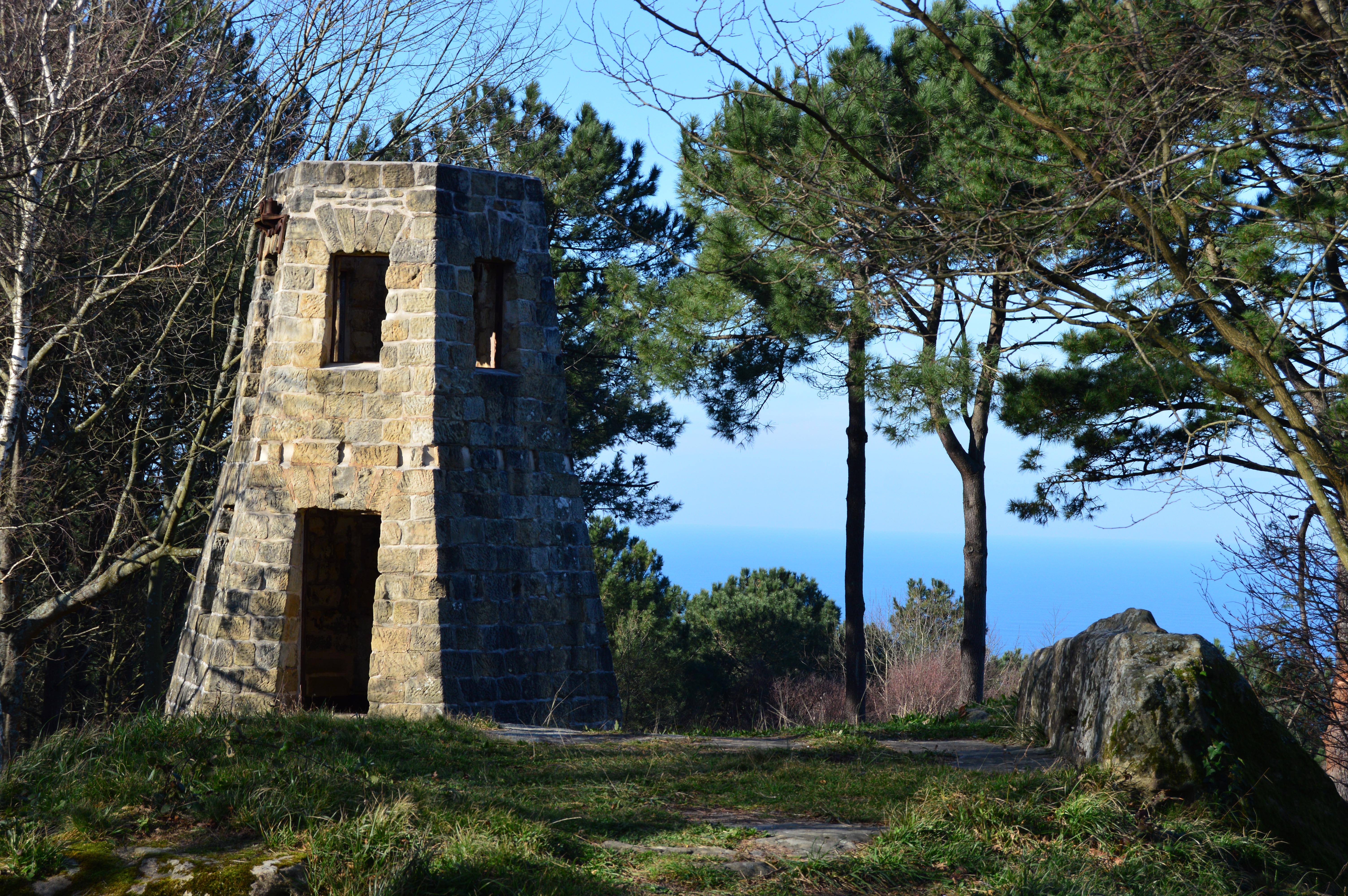 Continuando por la cresta en dirección sureste se encuentra la llamada “Peña del Ballenero”, el lugar donde se hallaba una de las atalayas de San Sebastián. Fruto de una interpretación mítica de la historia del lugar, se instaló un letrero en inglés, francés, euskara y castellano que anuncia el uso de esta prominente peña como atalaya ballenera en el siglo X.