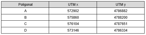 - Coordenadas geográficas de la poligonal de la superficie afectada: