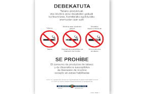 - 2.– En los lugares aludidos en el párrafo anterior deberán colocarse de forma visible carteles que adviertan de dicha prohibición.