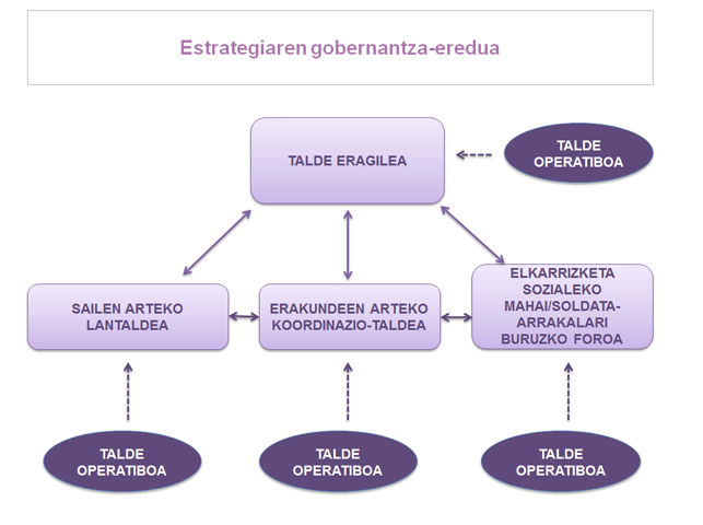 Eusko Jaurlaritzan, soldata-arrakala murrizteko Estrategiaren neurriak ezartzen zeregin garrantzitsuak betetzen dituzten sailetako ordezkari politikoek osatuko dute Sailarteko Mahaia. Sailarteko Mahai horren helburua izango da Estrategiaren garapen operatiboa garatzea, Planaren neurriak eta emaitzak ebaluatzea, ekintza zuzentzaileak identifikatzea eta gainerako agenteekin gobernantza koordinatzea.