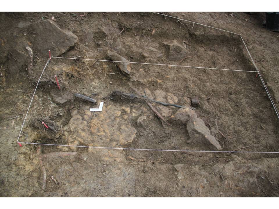Lurperatzea ez zen oso sakona. Fenomeno tafonomikoen ondorioz, eskeletoaren hezurra sakabanatu egin zen, eta bi diafisi baino ez ziren geratzen. Horien ondoan, bakelitazko kargagailu beltz bat eta hortzetako eskuila aurkitu ziren.