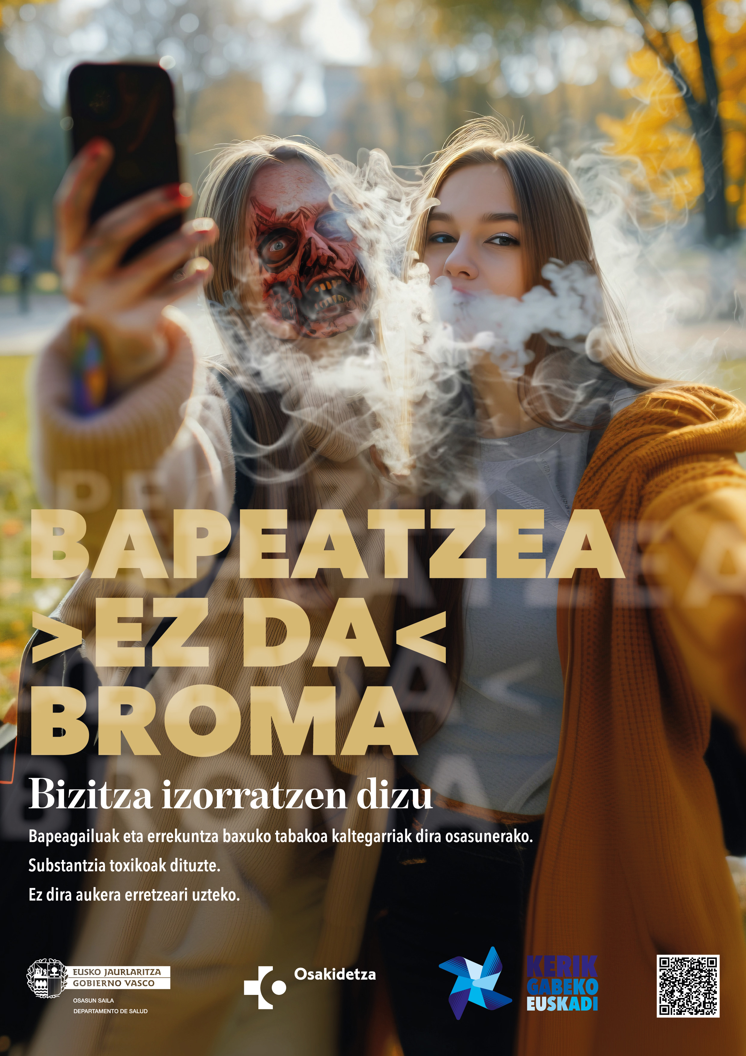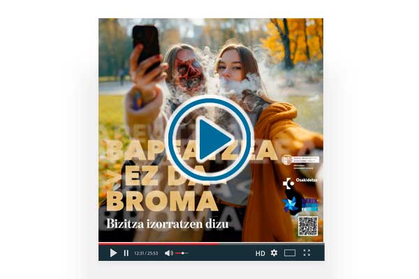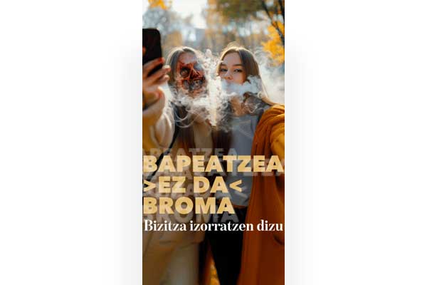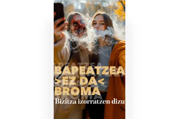 Horrela, digitalki eszena zirraragarri bihurtutako nerabeen artean ohikoak diren bi egoeraren irudiari dagokionez, honako mezu hau plazaratzen da: “Bapeatzea ez da broma. Bizitza izorratzen dizu”