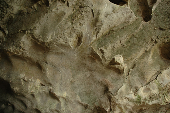 Eskuinekoa, berriz, zertxobait gorago dago, eta lurraren gainean marraztu zuten. Zenbait lerro gurutzatuk osatzen dute.