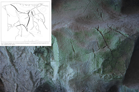 Multzo horren eskuinera, beste irudi batzuk daude. Haien artean, bisonte baten irudia da aipagarriena (9. irudia). Burua falta du. Hanka bana ageri da pare bakoitzetik, hurbilena baino ez. Sabelaren lerroaren gainean, lerro bat dauka modelatuta. Gainerako irudiak hainbat motatako lerroak dira.