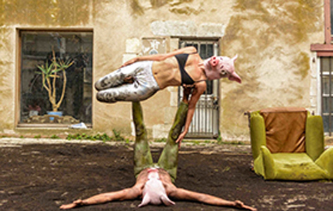 Echoes se estrenó en el Festival d’Arts de Carrer de La Mercè 2020 y evoca de manera lúdica e irónica el deseo de individualidad y las conexiones/interdependencias que existen entre nosotros/as, desde un lenguaje propio profundamente físico que mezcla el teatro, la danza y la acrobacia, creando una experiencia colectiva.