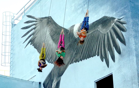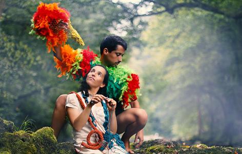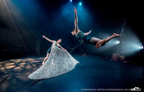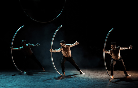 Intérpretes: Carlos López Aragón (Danza, acrobacia, rueda cyr, piano y percusión), Noemí Pareja Muñoz (Danza, boleadoras, guitarra y percusión)