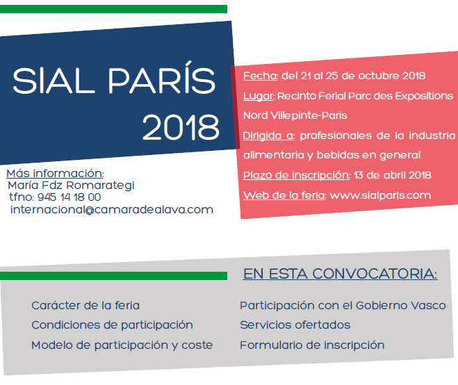 Convocatoria Sial París 2018 Pincha sobre la imagen para acceder a toda la información Fecha de última modificación: 07/03/2018