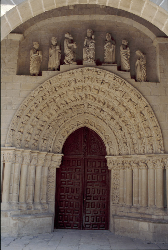 Las arquivoltas de la portada, reflejando la iconografía del momento, ofrecen toda una amplia variedad de temas geométricos, vegetales, animalistas y humanos. Tuesta, con su abigarrada mezcolanza de animales y figuras simbólicas, constituye el conjunto de arquivoltas historiadas más rico de Alava.