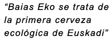 Supongo que quién se lleve a la boca una Baias Eko seguirá degustando agua del macizo del Gorbea, malta de cereales alaveses, lúpulo y levadura.