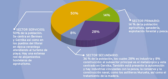 La actividad pesquera también ha marcado la vida de la comarca. El puerto de pesca de Bermeo se encuentra entre los más importantes de la cornisa Cantábrica, especialmente por su flota de bajura. Todo Bermeo parece estar construido para recordarnos su histórica y permanente relación con el mar: el edificio de la Cofradía de Pescadores, la lonja, las casas de colores y la Torre de Ercilla, declarada Monumento Histórico Artístico, y que alberga el Museo del Pescador.