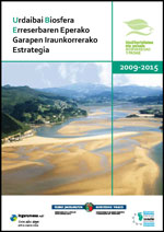 | Urdaibai Biosfera Erreserbaren 2009-2015 Eperako Garapen Iraunkorrerako Estrategia Urdaibain eskumenak dituzten eragileen arteko konpromiso partekatuaren fruitua da. Ahalegin guztiak eskualdea susta tzeko bideratu nahi dituen tresna dugu honako hau; baliabide naturalen kon tserbazioa eta garapen ekonomiko eta sozial iraunkorra bateragarri egin nahi ditu era orekatuan. Urdaibaik balio berezia du, eta Euskadik harro egon behar du harekin; nazioartean ere aitortu egin zaio balioa, UNESCOk Biosfera Erreserba izendatu baitzuen 1984an. Eusko Legebil tzarrak eremu honen Babesari eta Antolamenduari buruzko 5/1989 Legea onartu zuen, bertako ekosistema mul tzoa babesteko eta haien berreskurapena bul tza tzeko asmoz, balio handia dute-eta naturaren, zien tziaren eta ingurumen hezkun tzaren ikuspegitik. Lurralde garapenerako eredu bat ezar tzea zen helburua, beraz; garapen ekonomikoa eta soziala auzitan jarri gabe, balio naturalak zein kulturalak babestea ahalbidetuko zuen eredu bat ezartzea, alegia. Urdaibai Biosfera Erreserbaren 2009-2015 Eperako Garapen Iraunkorrerako Estrategiak aprobe txatu egin nahi ditu sektoreka eta hainbat arlotan abian jarritako planen harira sortutako sinergiak (2008-2014 Eperako Bioaniztasunerako Estrategia, 2008-2012 Eperako Klima Aldaketaren Aurkako Euskal Plana, Ingurumenaren aldetik Iraunkorra den Kontsumo Euskal Plana eta Euskadiko 3E-2010 Energia Estrategia, besteak beste), aurrerapausoak emateko Garapen Iraunkorrerako Ingurumen Euskal Estrategiak ezarritako helburuetarantz. Dokumentu hau, bestalde, prozesu luze baten emai tza da. Prozesuan herri erakundeetako, gizarteko, arlo ekonomikoko eta lurraldeetako eragile pribatuek eta publikoek parte hartu dute, baita herritarrek ere. Helburua estrategia lagungarria sor tzea zen; etorkizuna bideratzeko lagungarria, batetik, eta Urdaibai, eta Euskadi osoa, ikerkun tzari, esperimentazioari eta ondare naturalaren kon tserbazioa eta garapen ekonomikoa eta soziala bateratu nahi dituzten ekimenen garapenari dagokienez lurralde berri tzaile bezala erreferentzia bihurtzeko lagungarria, bestetik. Dokumentu hau ez da ofizialki onartu, beraz, ez da erreferentziako dokumentua. |