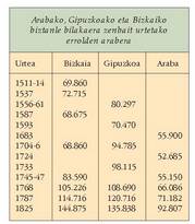 XVI. mendearen hasieran Arabak 72.000 biztanle bazituen ?hiru probintzietan biztanle kopuru txikiena zuena zen ordurako?, XVIII.aren bukaeran ez zen 72.000 izatera ere iristen, eta gainera, Arabaren eta kostaldeko beste bi probintzien arteko aldea areagotu egin zen: Bizkaiak XVI. mendearen hasieran ia 70.000 biztanle zituen, Gipuzkoak bezalatsu, eta XVIII.aren bukaeran, berriz, batak 114.000 eta besteak 120.000. XIX. mendearen hasierarako, ordea, Bizkaia izan da hiruetan jendetsuena.