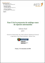 | El objetivo principal de este proyecto consiste en elaborar un listado de especies marinas de la costa vasca y aguas próximas (golfo de Bizkaia) que presenten en la actualidad una situación o estado de amenaza y, por ende, puedan ser incluidas en el Catalogo Vasco de Especies Amenazadas. Dicho objetivo se alcanzará tras realizar las siguientes tareas: • Recopilación bibliográfica y actualización de tratados y listados (de tipo normativo y de tipo “lista roja”). • Revisión del estado de especies marinas en la Comunidad Autónoma Vasca. • Informe tipo seguimiento y justificativo de primer año. • Reunión con expertos de diferentes instituciones y Administraciones (INSUB, UPV-EHU, etc.) para elaborar una propuesta de posibles especies marinas susceptibles ser incluidas en el Catálogo Vasco de Especies Amenazadas. • Elaboración de un listado definitivo de las especies marinas a incluir en Catálogo Vasco de Especies Amenazadas mediante un informe a entregar al finalizar el proyecto. |