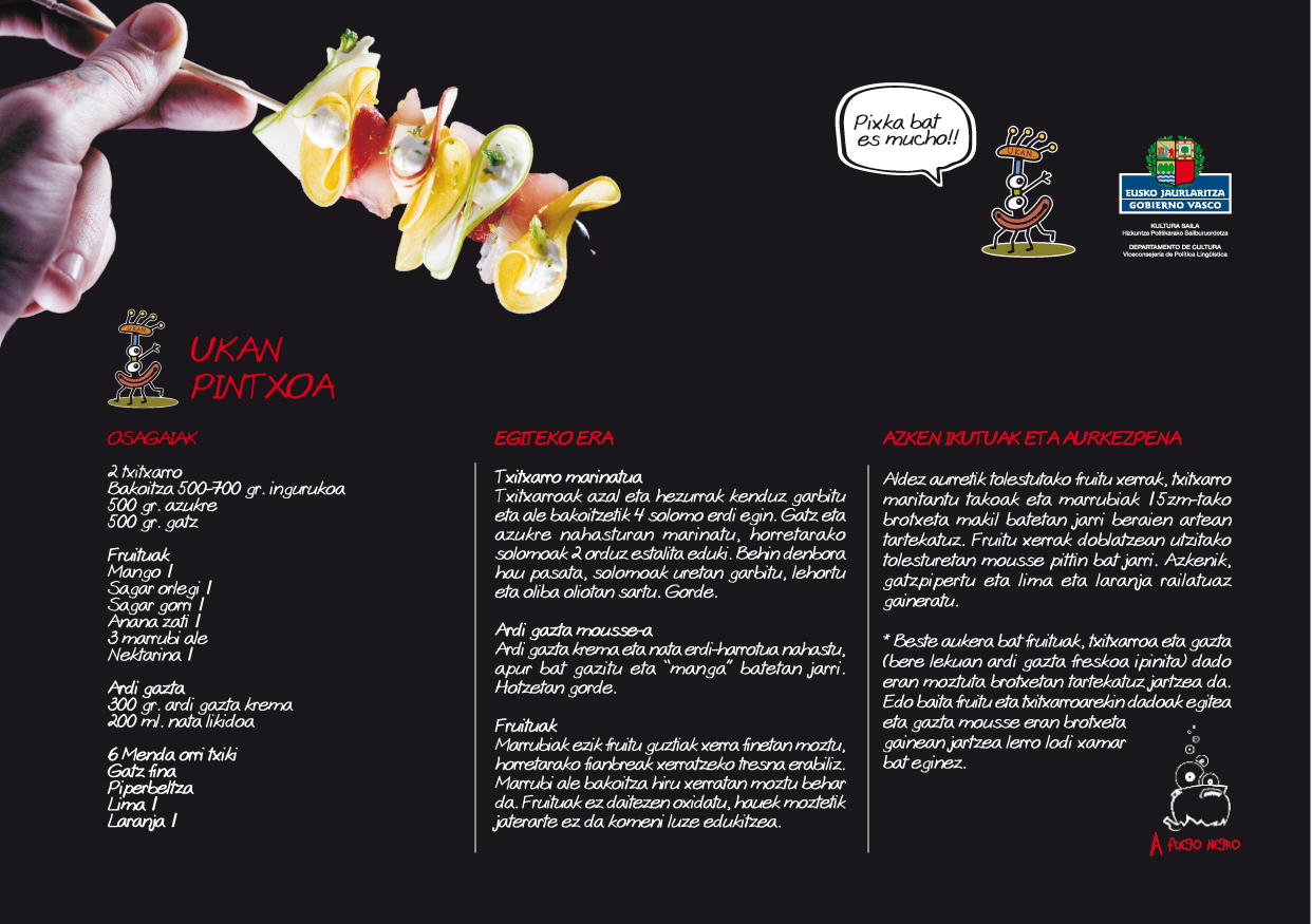 - Tarjeta de "Ukan pintxoa" para los bares euskaraz (jpg, 504 kB) / castellano (jpg, 534 kB)