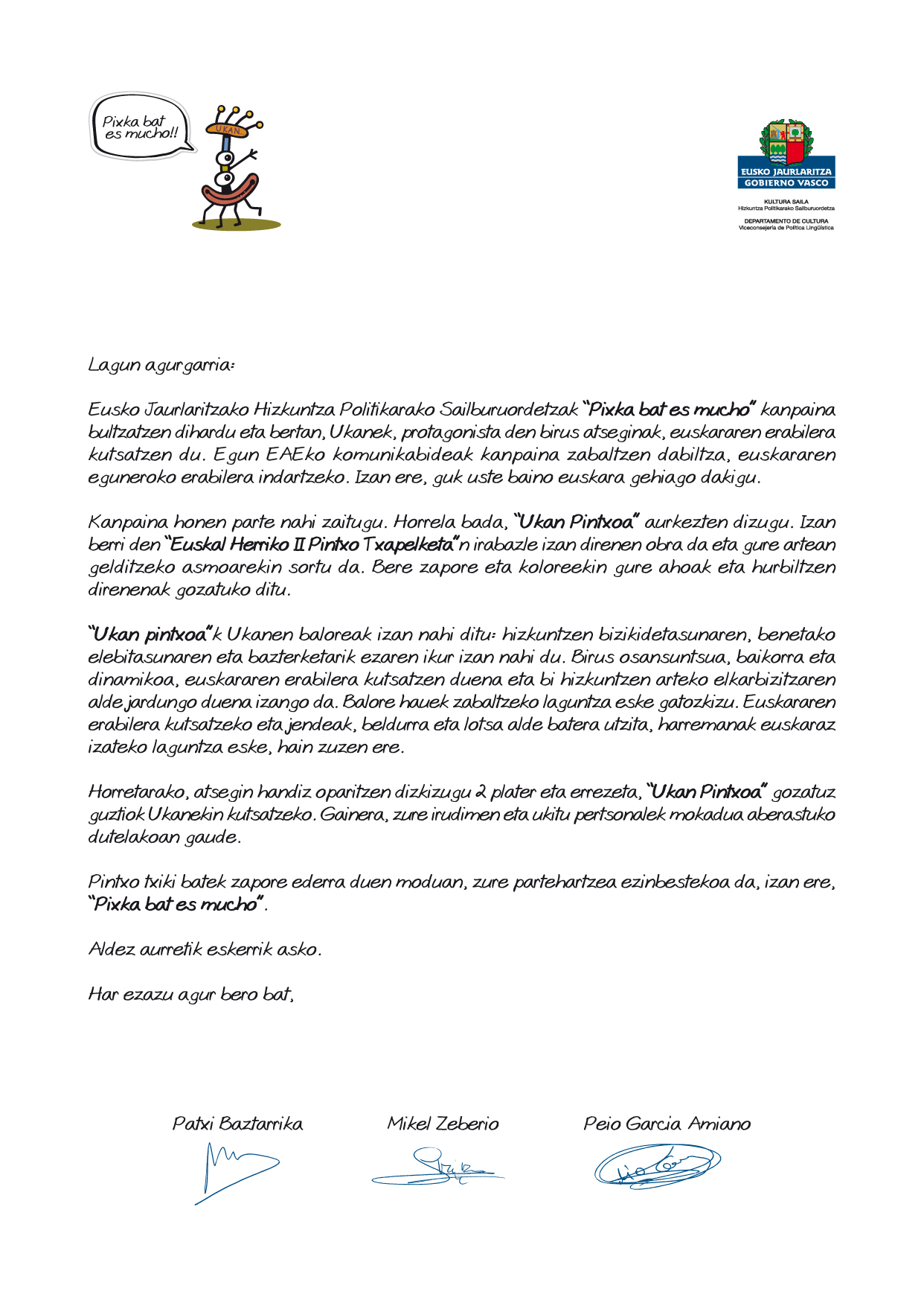 - Carta de "Ukan pintxoa": euskaraz (jpg, 542 kB) / castellano (jpg, 600 kB)