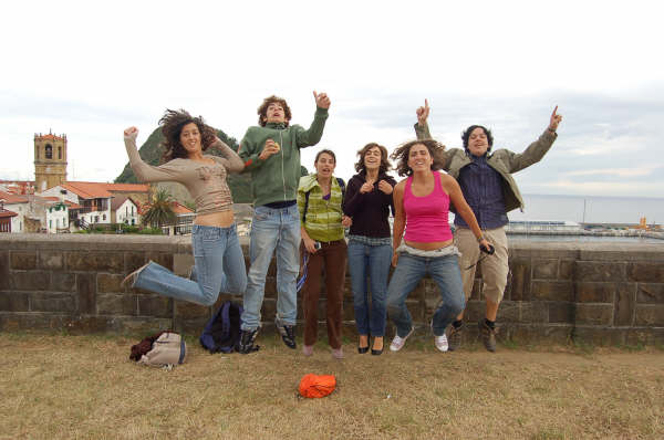 En esta foto estamos en Getaria en una excursión que hicimos y nos lo pasamos tan bien en el campo de trabajo que estuvimos a puntito de tocar el cielo, como se puede ver.