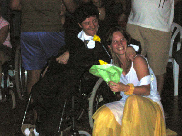 En esta foto estamos Elena y yo echando un baile al son de la música de la radio de la furgoneta que se ve atrás, en la que nos movíamos para todo.