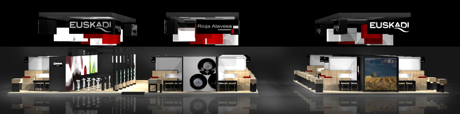 Los nuevos stands de Euskadi, se han diseñado tres modelos en función de los sectores –azul, verde y rojo- se verán por primera vez juntos en una misma feria.