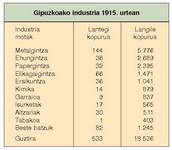 XX. mendearen aurreneko hamarraldian, Bizkaian, biztanleria aktiboa industriala zen langile multzo handiena. Gipuzkoan 1920tik aurrera izan zen hala. Euskal biztanleria aktiboaren egitura oro har azterturik ere, 1910erako industria zen buru.XX. mendearen bigarren hamarraldian bizkortu zen Gipuzkoaren industrializazioa, Lehen Mundu Gerrak eragin zuen ekonomia goraldian batez ere. 533 fabrika eta 18.536 langile zituen Gipuzkoako industriak 1915ean. Metalurgia zen nagusi: biztanleria aktiboaren %31k industrian ziharduen. Hurrengo urteetan asko handitu zen metalgintzaren sektorea, eta fabrika asko sortu zen: 114 lantegi zegoen 1915ean eta 391, 1923an.