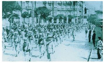 Bizkaitar meatzeetako langile grebalarien kontrako zapalkuntza militarra Bilboko Areatzan, 1911ko irailean.<br><br>