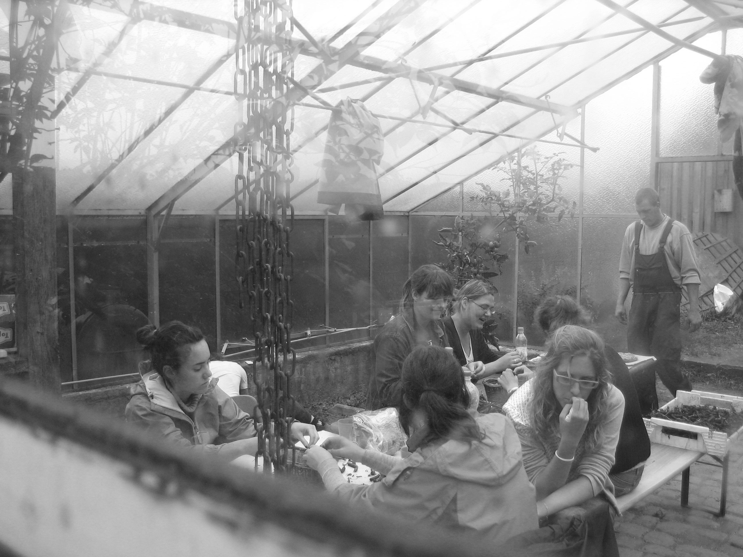 La foto sacada desde fuera del invernadero donde tuvimos que trabajar un día por el mal tiempo.